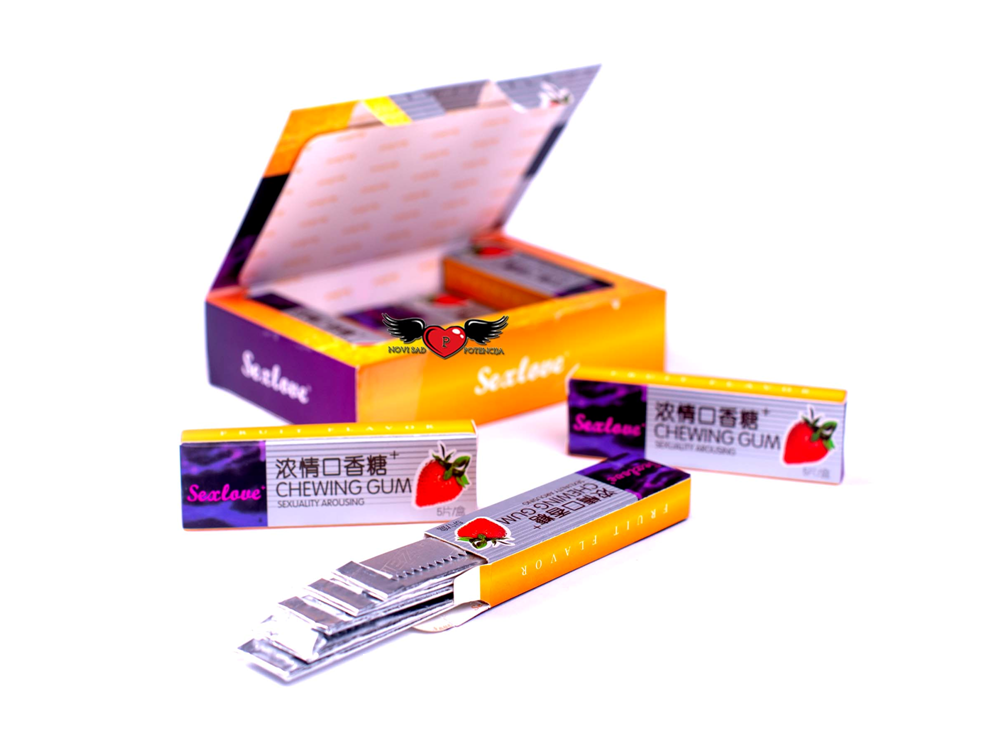 Sexy Gum žvake za žene su jak afrodizijak za žene. Nakon 20 min od konzumiranja ženu obuzima nekontrolisano seksualno uzbuđenje, povećava joj se seksualna osjetljivost i seksualna želja. Uzima se 20-30 min prije seksualnog odnosa. Žvake za žene na biljnoj bazi sadrže (Gurana, Ginseng, Maca) i druge biljke koje izazivaju neodoljivu želju za seksom.